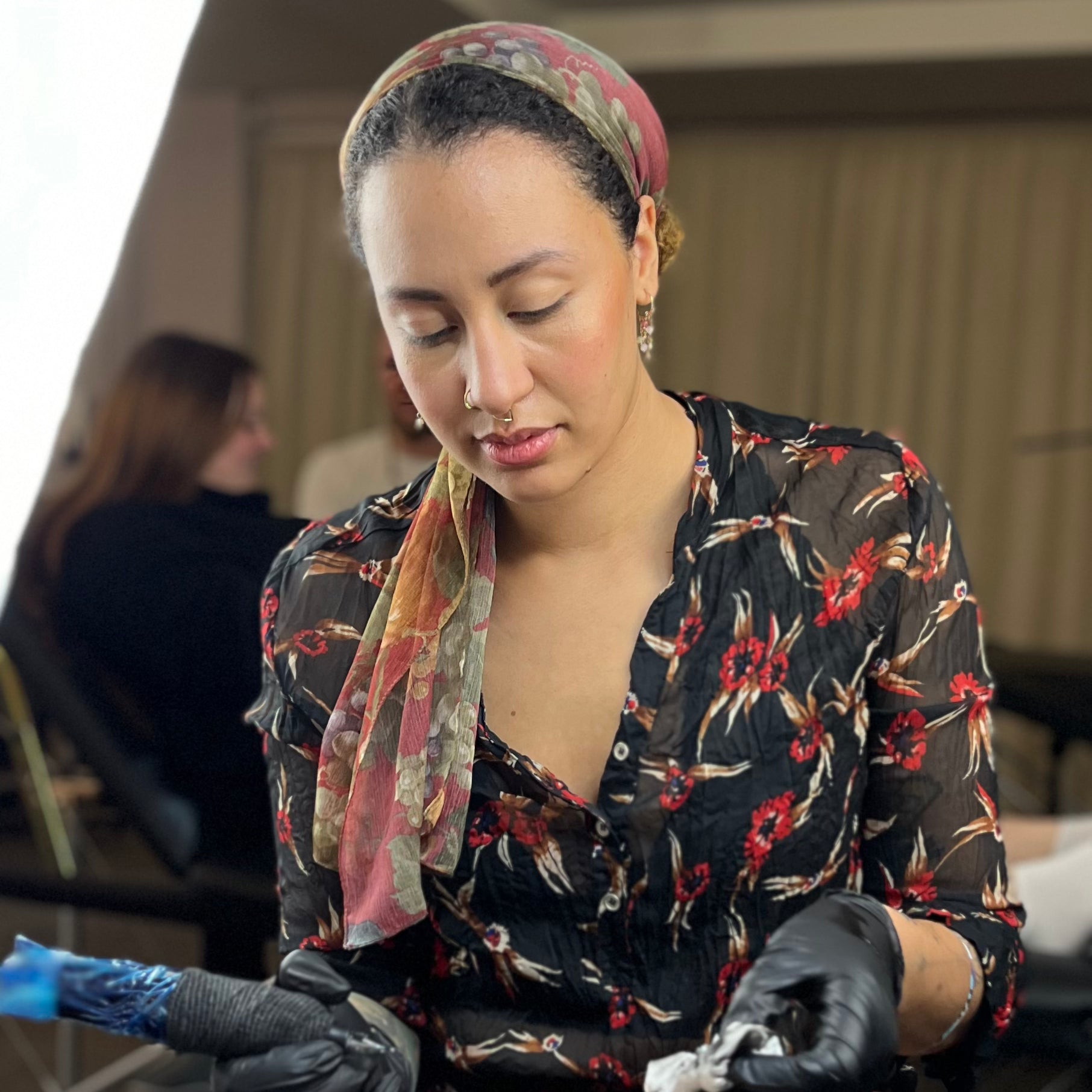 Rebeca focuses on micro-realism, fine line, abstract, and illustrative tattoos — especially small, detailed pieces with emotional meaning.
